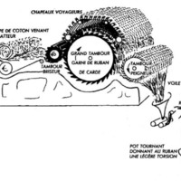 Il s’agit de récupérer le ruban issu de l’étalage et de le rendre régulier et homogène avant d’entrer dans la filature, en rendant les fibres droits et parallèles. Essentiellement deux peignes à dents frottant le coton jusqu’à ce que les fibres soient toutes parallèles, et peignes montés sur des rouleaux pour mécanisation : un tambour en bois central au milieu, et des « chapeaux » autour et/ou de plus petits tambours dentés.